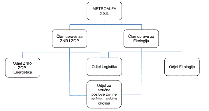 Tvrtka METROALFA d.o.o. sastoji se od više odjela, a njihova međuovisnost prikazana je kao organigram na slicMETROALFA d.o.o. svoje usluge plasira najvećim dijelom na domaće tržište i to za vrlo široki krug djelatnosti kao što su prerađivačka industrija (prehrambena, kemijska, farmaceutska, metalna, naftna, cementna), energetika, građevinarstvo, trgovina, prijevoz, telekomunikacije, osiguranje, bankarstvo, javna uprava, obrazovanje, zdravstvo, kulturne ustanove itd.